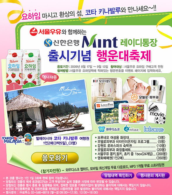 신한은행 Mint 레이디통장 출시기념 행운대축제~!!