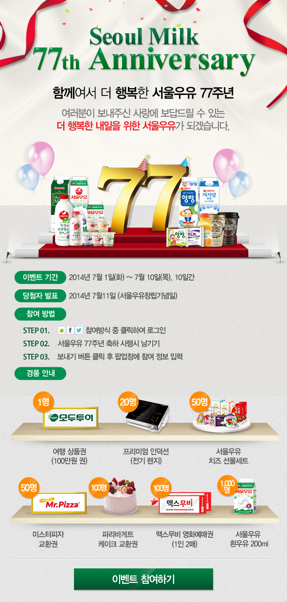 서울우유 77주년 기념 축하 이벤트