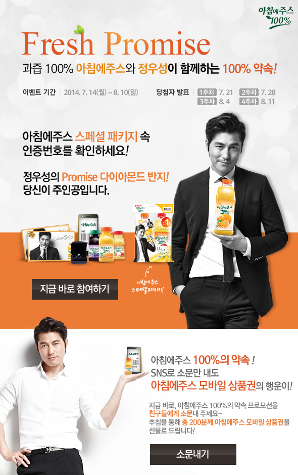 과즙 100% 아침에주스의 신선한 이벤트!!