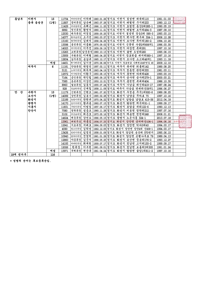 [공고] 제23대 대의원선거 당선인 공고