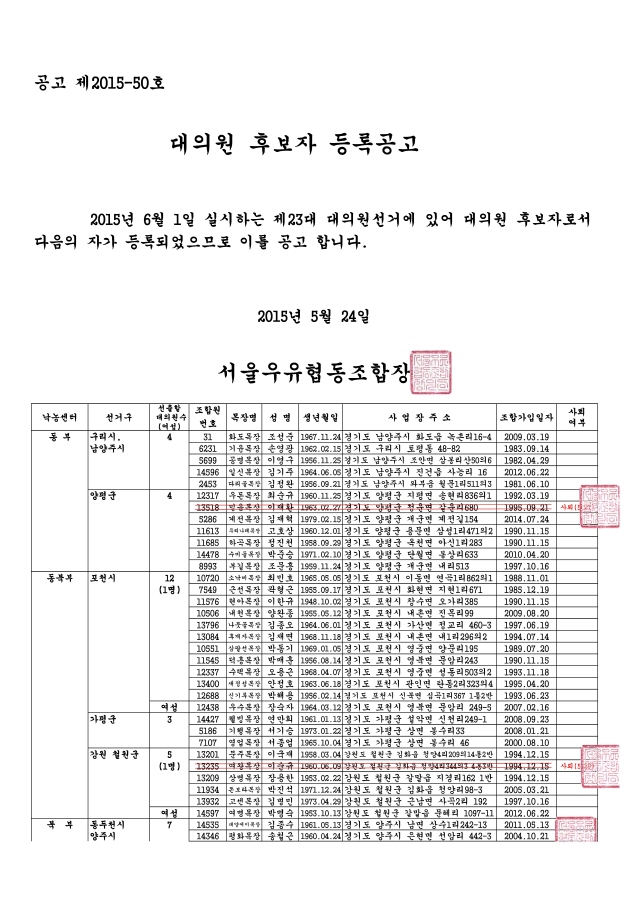 [공고] 제23대 대의원선거 후보자 등록공고